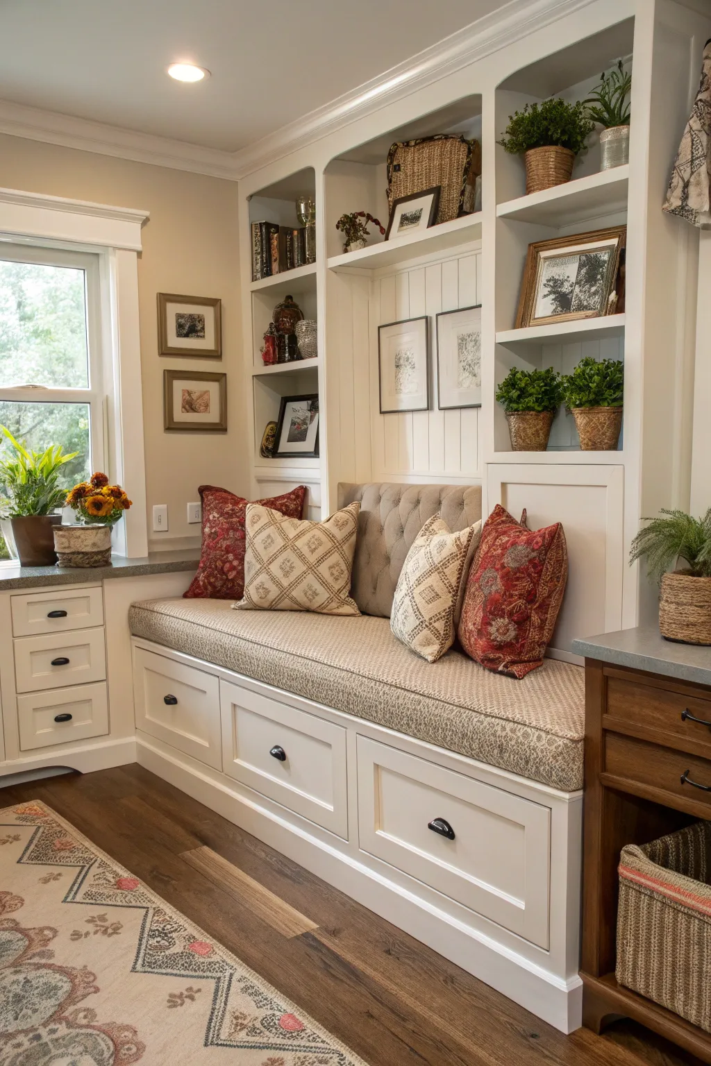 - Storage Stool: Opt for a stylish storage stool for extra seating and hidden storage in your banquette area.