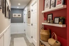 A highlighted wall can introduce character and depth to your narrow hallway.