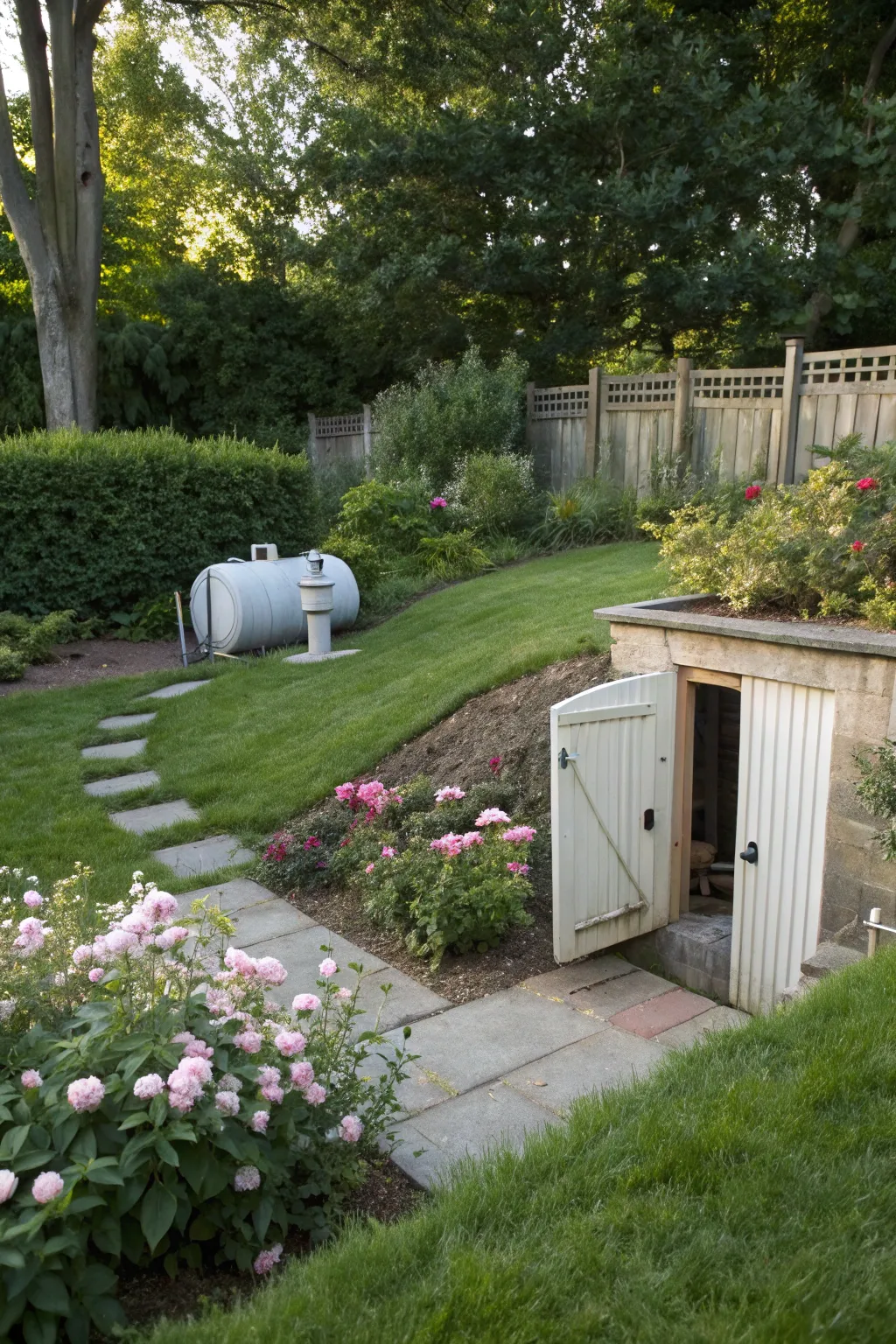Incorporate your fuel container into a garden house. It’s a clever method to conceal it while gaining additional storage area; I painted my house in earthy shades to synchronize with the garden panorama.