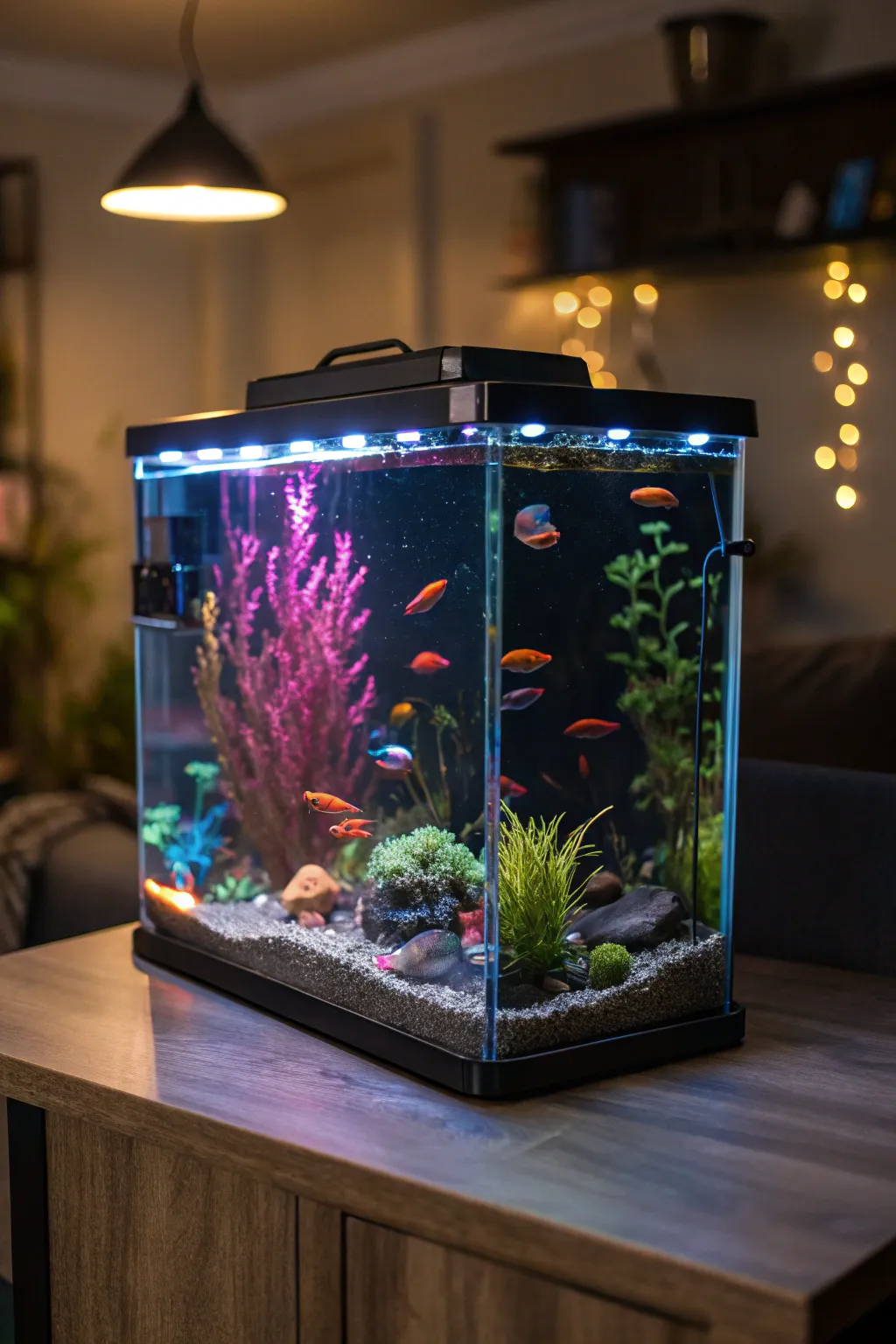 Employ illumination consequences so as to enhance the ambient conditions prevailing within your tank. I derive considerable pleasure from experimenting with LED illuminations so as to engender assorted dispositions and accentuate the salient attributes of my tank.