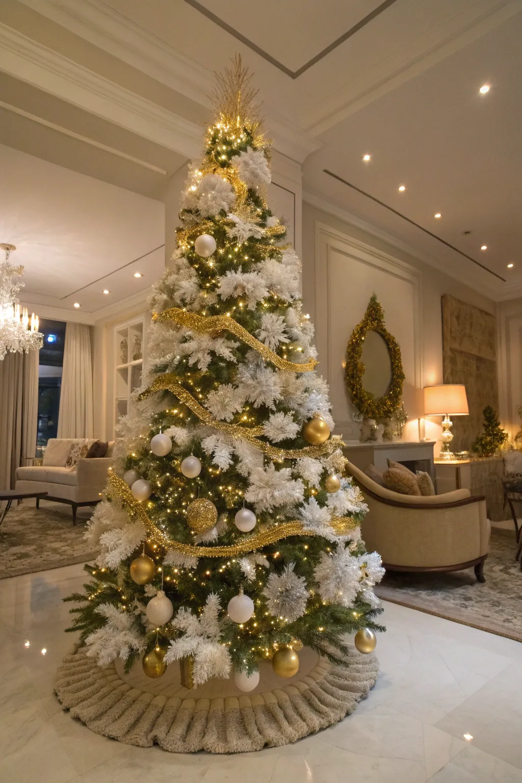 - Icy White Christmas Tree: Convert your living space into an enchanting winter scene with a radiant icy white tree.
