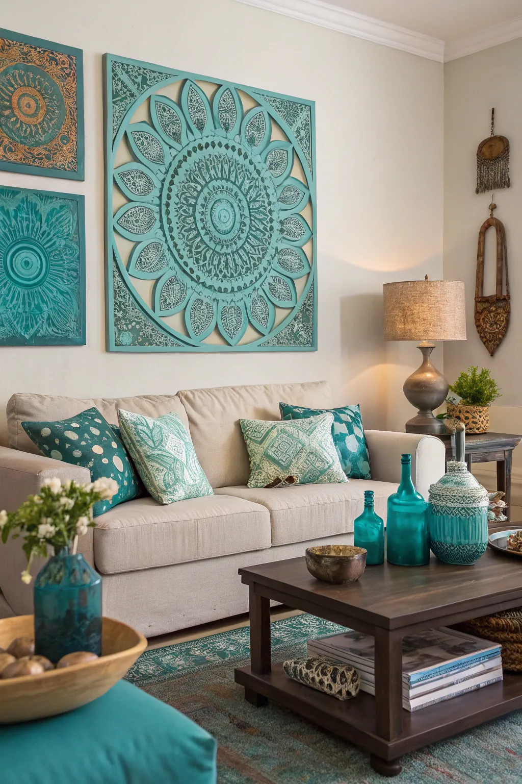 • Artistic Teal Mandala Design: Incorporate a bohemian touch with intricate teal mandala wall art, achieving a unified aesthetic.