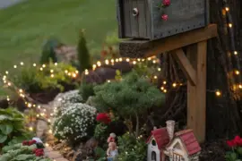 Using a miniature picket fence as a mailbox stand crafts a delightful, unified aesthetic. It’s a charming homage to traditional rural living, which I’ve always held dear.