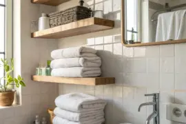 Adding towel racks enhances both practicality and aesthetic, keeping your towels neat and accessible. I always suggest selecting racks that match the overall style for a unified appearance.