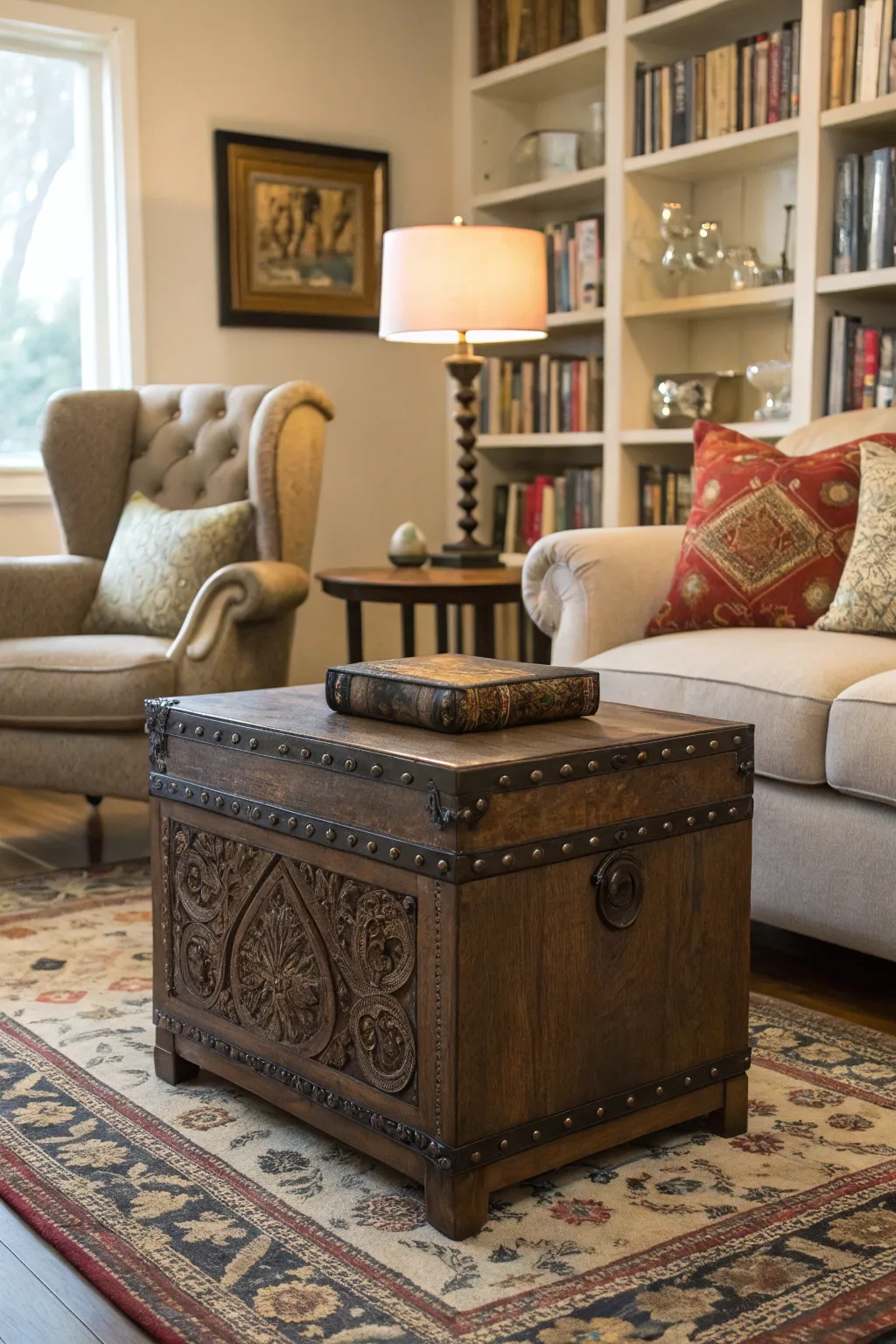A trunk becomes an artistic platform, highlighting treasured decor items.